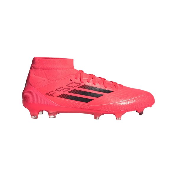Free the fast with the adidas F50. Created to unlock the full potential of your acceleration, movement and speed. These lightweight Pro football boots include a Fibertouch upper with Sprintweb 3D texturing for rapid dribbling, and a Sprintshell 360 outsole for snappy acceleration on firm ground. Designed specifically for female athletes, the adidas PRIMEKNIT mid-cut collar and thick sockliner add extra support and comfort.