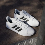 If you could only have one pair of sneakers, this could be them. These adidas Grand Court shoes with the classic 3-Stripes keep your sneaker game sharp and clean. Cloudfoam Comfort cushioning keeps the insides soft and pillowy. Pair them with any of your favourite pants because these will take you anywhere and everywhere.