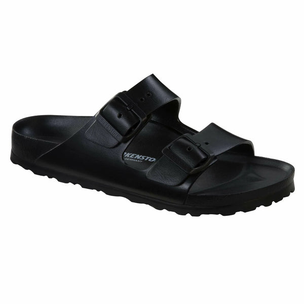 The Birkenstock EVA Arizona sandals are made from ethylene vynyl acetate- EVA for short - which is a particularly durable, safe plastic that is produced by Birkenstock and made in Germany. These sandals are well-suited for wet areas such as saunas, swimmimg pools, beaches or the ocean.