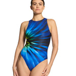 Energize your swim session in the Zoggs Octane Hi Front. Its lively flashes of colour add vibrancy and energy to your time in the pool. The high front and medium leg height provide coverage, while the shelf bra and clipback ensure a comfortable and secure fit.