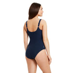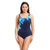 The Ocean Treasure Adjustable Scoopback, takes Nautical to a new level with its mix of navy & white stripes & flower print. Featuring adjustable straps, tummy control, full foam cups and a high scoopback, this medium leg height style suits all body types.