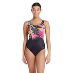 Make a statement this summer in the Zoggs Savannah Scoopback swimsuit. The bright colourful bursts of the Savannah print are perfectly placed to flatter your figure.