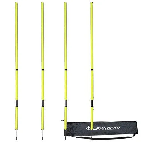 The ALPHA Gear Agility Speed Pole pack comes in a pack of 4. The ALPHA Gear Speed Pole is a 2 piece pole with middle tread connection. The 2 piece poles are then connected so they remain attached, making it super-fast to locate and set up. The poles are 5ft High and 29mm hi quality material with the addition of an Elevated Spring. The spring being elevated minimises the swing for quick retraction. The spring is then covered with plastic material tubing to make them safe and provide protection.