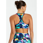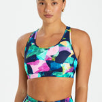 Run, Swim or the gym! Our Chlorine Resistant Run//Swim performance fabric has supportive, no-show 4-way stretch. High coverage racerback with extra built-in support and designer laser cut panels.