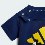 Your little one will be ready for anything in this infants' tee and shorts set from adidas. Disney's Mickey Mouse and friends bring their famous energy to allover print on the shorts and the tee's graphics. Whatever the day's plans, soft knit fabrics will keep them comfortable