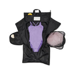 Minimize your luggage by maximizing what you can fit inside one bag! This ultra-versatile duffle bag is designed to lay flat, unzip, and unfold into a garment bag. The center can hold additional belongings, and the sides fold up to form a weekender bag shape without wrinkling any hanging garments. Features dual side pockets: one mesh pocket for footwear and one lined pocket for personal items. Comes with a detachable shoulder strap for comfort and shorter side handles for ease of carrying. Fully lined for security.