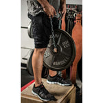 • Features an extended 34" steel chain and carabiner mechanism to easily add weight for chin-ups and dips
