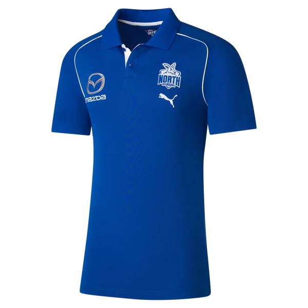 Celebrate a century of North Melbourne pride with the 2025 Team Polo. Featuring the return of the beloved royal blue, this design brings a fresh take on a classic look, embodying the spirit and tradition of the Kangaroos. On the back, a special 100-year logo marks North Melbourne Football Club's proud history in the V/AFL, offering fans a lasting tribute to the club’s journey and achievements. This polo is not just apparel—it's a piece of Kangaroos legacy.