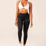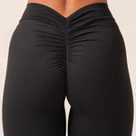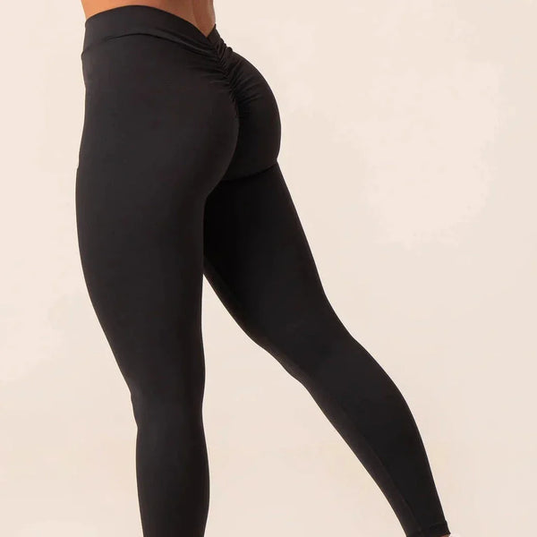 • Foldover waistband that sits high at front and forms a low V-shape at back
