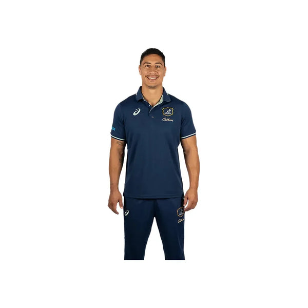 The WALLABIES MEDIA POLO uplifts a classic style with new evolved details. Made with a recycled textured polyester, it features jacquard knit collar and cuffs with a double layer snap button placket for a classic look with a modern edge. Lastly, the golden threads unite the range through the Wallabies badging and placket bartacking.