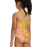 Brighten little one's wardrobe this summer with Zoggs Nirvana Yaroomba Floral! Colourful flowers and contrasting yellow straps, combined with Zoggs unique Yaroomba Floral back - this one piece is adorable.