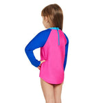 Ensure your child is protected from the sun's harmful rays this Summer in our Lily Long Sleeve Zip Sun Top. Featuring a colourful Lily flower print, contrast colour sleeves and back neck zip - your little girl will love this rash vest from the moment they put it on. This sun top also has UPF 50+ sun protection and is highly chlorine resistant - it is made with our sustainable Ecolast™ fabric!