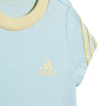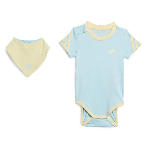 Dress your little champion in the Adidas 3-Stripes Onesie with Bib, designed for comfort and cuteness. Crafted from ultra-soft organic cotton, this onesie keeps your baby cozy whether they're mastering the Happy Baby pose or crawling on a toy hunt. The matching bib, featuring a handy snap closure, helps keep mealtime messes at bay. Made from natural, renewable materials, this set supports a greener planet by reducing plastic waste. Perfect for playful days and snuggly nights, it’s a stylish and sustainable choice for your tiny athlete’s wardrobe.