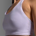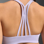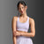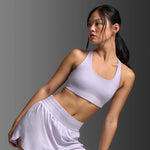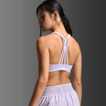 Low impact u-shaped bra has a removable one piece moulded foam cup to provide a gentle compressive feel that hugs your body so you can stretch and move without limits.