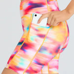 Cool down after your run in our limited edition Let The Light In Run Swim Active Dual Pocket Mid-Thigh Tight made with Chlorine resistant performance fabric for long lasting wear. Designed with dual side pockets to store the essentials as well as our signature higher rise, Powermesh lined waistband for increased support around your core.