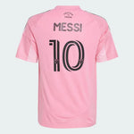 Classic football stripes finished in instantly recognisable Inter Miami CF colours. Standing out in two shades of pink, this juniors' adidas jersey leaves no doubts about your favourite club. Created for supporters, it has moisture-managing AEROREADY for all-day comfort and a premium woven badge for full-on team pride. That name and number celebrate the club's greatest player.