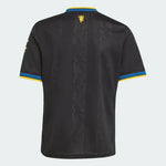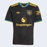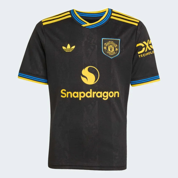 Part of a clean, classic adidas kit that will transport fans to a golden era. Finished in black, this juniors' Manchester United third jersey conjures some of the club's most iconic players and memorable away performances. A yellow Trefoil and club badge stand out on the chest while more subtle, devilish details are woven into the fabric. Moisture-managing AEROREADY keeps young fans comfortable while their team create new memories.