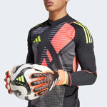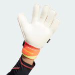 Stop shots in their tracks in adidas goalkeeper gloves designed to dominate. These Predator Match football gloves fit securely with a half-wrap wrist strap. Soft Grip Pro latex in the palm offers cushioning, grip and durability in all weathers. Fingersave spines reinforce the fingers, adding security to every catch and throw.