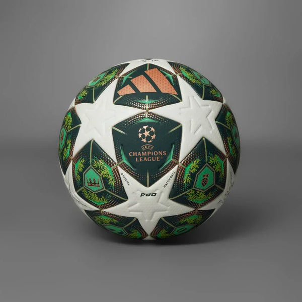 Clad in the greens of Munich's patinaed copper domes and picture-postcard backdrop, this adidas Pro ball is an elegant tribute to the 24/25 UEFA Champions League final host. Used during the knockout stages of Europe's most prestigious club competition, it's built with a high-grade butyl bladder and seamless cover for high-performance football.