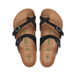 The Birkenstock Mayari thong sandal is a distinctive classic model with a toe loop and cross strap. The combination of anatomically shaped footbed and secure adjustable instep strap makes Mayari extremely wearable in a wide range of situations. Classic support and adjustability, designed beautifully.