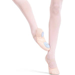 Arabesque like the pros in the Canvas Juliet Ballet Shoe. The unique sculpted arch improves pointing and flexing with ease. Features pre-attached criss-cross elastics for a secure fit. This ballet slipper is a first rate choice for dancers with narrow feet. Snug yet flexible for extra control in class or on stage.