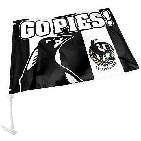 - Window Car flag - Collingwood logo and team colours design - Plastic pole with bracket that fits to car window - 30cm x 45cm flag with 43 cm pole - Official AFL Merchandise
