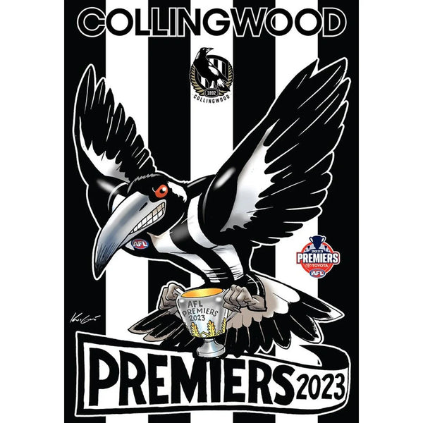 Adorn your belongings with the champion's pride. This Mark Knight designed A6 sticker is a must-have for every Collingwood Magpies fan. Limited edition.