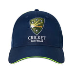 The Cricket Australia Training Cap features a light weight sustainable recycled yarn and mesh combination creating greater breathability with contrast colour trims and an adjustable velcro strap rear closure creating one fit for all.