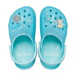 Encourage your little ones to discover their magical gifts in the kids’ [toddler] Frozen Elsa Classic Clog. From the school hallways, to the playground, all the way to the North Mountain–Iconic Crocs Comfort™ means they’re prepared for adventures in any season. Icy-themed Jibbitz™ charms add sparkle and uniqueness to every step. Lightweight feel, breathability, and easy on/off means nothing is in their way