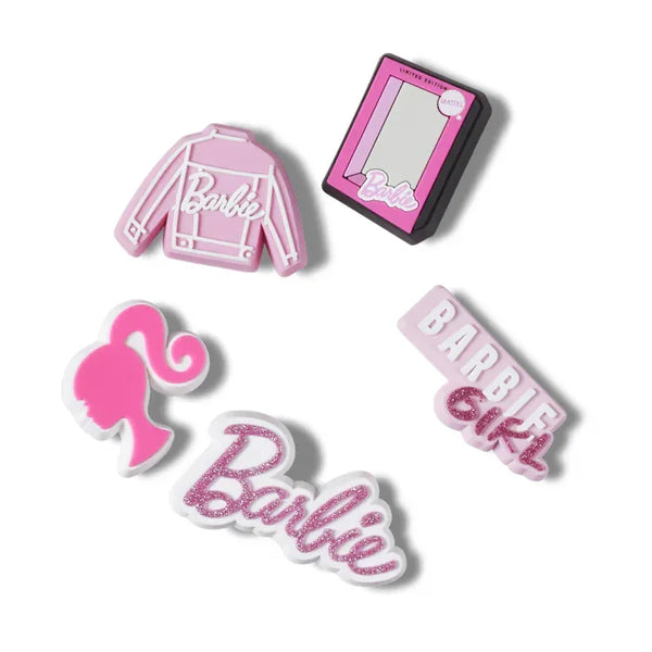 Pop some personality into your shoes with these Barbie 5 Pack Jibbitz™ charms. They’re the perfect addition to your favorite pairs of clogs, slides, and more.