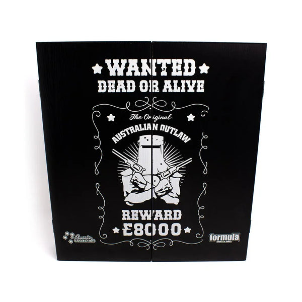 The Formula Outlaw Cabinet Set is from our Aussie Collection. The unique Outlaw design has been applied to a Walnut MDF dartboard cabinet.