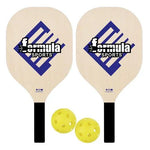 Pickleball 2 Player Set from Formula Sports. Includes 2 wood paddles, 2 outdoor pickleballs and a reusable mesh drawstring bag.