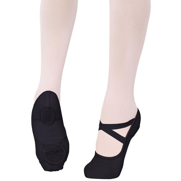 Our best-selling Hanami Ballet Shoes are unlike any ballet slippers you have ever worn. This split-sole shoe is made of high quality canvas material that stretches and really clings to your foot for a true second skin fit. The incredible, buttery soft lining provides comfort beyond your expectations. No drawstrings erase any worry of the ballet shoe coming undone. Slip it on and glide freely across the dance floor.