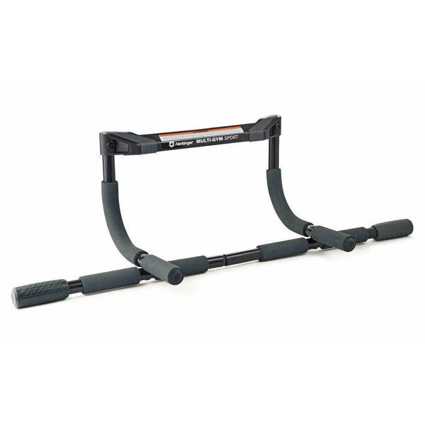 The Harbinger® Multi-Gym is a portable gym system that can be used to do pullups, sit-ups, pushups and dips. The Harbinger Multi-Gym Sport targets arms, chest, core and back muscles with workouts that ensure maximum muscle engagement. It features padded handles that allow for 3 grip positions to perform normal grip, close grip and hammer grip pullups. The 300 pound weight capacity makes it safe to use with a weight vest. Placed on the floor, Harbinger Multi-Gym Sport can be used for situps, pushups, and dips; padded handles provide comfort and help to ensure correct form. Easy to install, the Multi-Gym Sport does not require any drilling and securely fits door frames 27 – 33 inches wide and up to 6 inches deep. Assembled dimensions: 12 x 36.5 x 11 inches; weight 4.8 pounds.