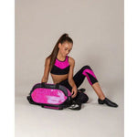 The Jewel Glitter Bag is your sparkling new best friend. Why you'll love it: - Sparkling holographic fabric panels to make a statement - Removable strap and carry handles for easy transport - Internal wet pocket for separating shoes and drink bottle pocket - Convenient zip closure - Available in Party Purple and Hot Pink
