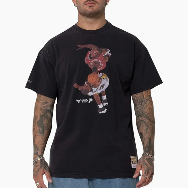 Level up your game-day fit with the NBA Finals Aerial Tee. Featuring iconic overhead shots from legendary Finals matchups, each tee captures basketball greatness in motion. Made from 100% cotton with a digital print and distressed filter for a vintage look and feel. Finished with sleeve embroidery and a classic Homage patch—this one’s for the real hoops heads.