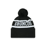 Stay cozy and show your Broncos pride with this soft New Era knitted beanie! Featuring a fun black pom on top and the team logo embroidered on the cuff, it’s perfect for chilly game days or casual outings. The New Era flag on the side adds a stylish touch, while the one-size-fits-most design ensures a comfy fit for everyone. Keep warm and playful all season long!