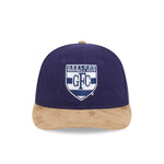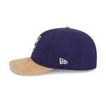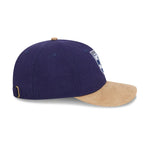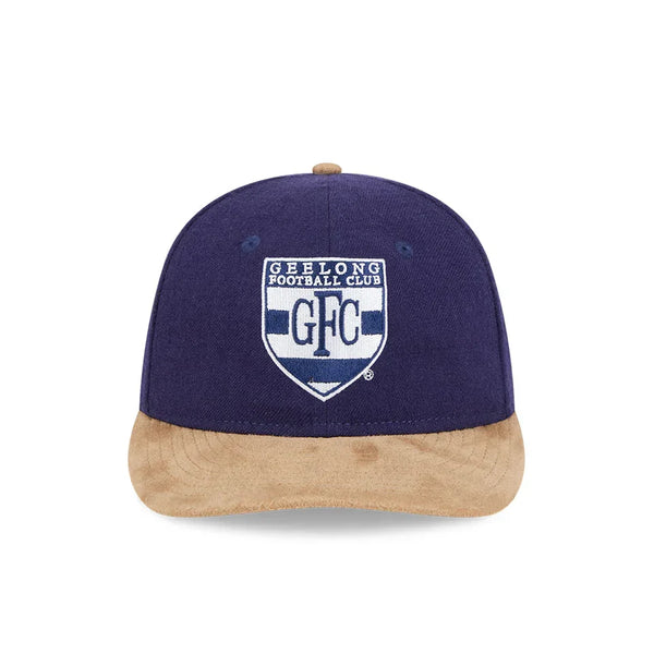 The AFL Supporter Contrast Suede 9FIFTY Retro Crown features an embroidered flat retro logo on a low-profile unstructured wool crown in official team colours, contrast suede visor and cotton undervisor, a NE Flag logo on the left side, and an adjustable wool enclosure.