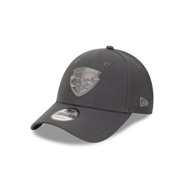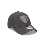 The Geelong Cats Graphite Grey 9FORTY Cloth Strap features a raised embroidered logo on the Front of a Dark Grey Crown. Additional features include a New Era Flag Logo on the left side.