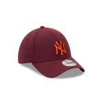 The New York Yankees Blood Orange 39THIRTY Stretch Fit Features a Raised Team Embroidery Detailing on a Maroon Red Crown." Additional Features include a MLB Logo Embroidery at Rear" and a New Era Flag Logo Embroidery on the Left Side
