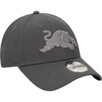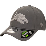 The Penrith Panthers Graphite Grey 9FORTY Cloth Strap features a raised embroidered logo on the Front of a Dark Grey Crown. Additional features include a New Era Flag Logo on the left side.