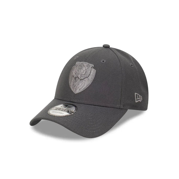 The Richmond Tigers Graphite Grey 9FORTY Cloth Strap features a raised embroidered logo on the Front of a Dark Grey Crown. Additional features include a New Era Flag Logo on the left side.