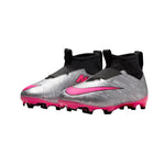 Look the Part Throughout the years, Volt and Hyperpink have been used across many of the most iconic cleats in the Mercurial's lineage. The Volt MXXV graphic to the Hyperpink Swoosh logo to the Hyperpink-colored cleats underneath offer unique expressions for this special design. A chrome effect makes the metallic silver base pop, highlighting the importance of the 25-year milestone. Respecting the Past The Mercurial has been the catalyst for some of the most memorable moments the game has produced. Using historical Mercurial logos, we created a repeat graphic that speaks to different eras dating back to 1998. The medial (big-toe side) MXXV graphic celebrates the gravity of this historic moment and connects to the cleat’s previous anniversary. Springy Underfoot Feel The heel Zoom Air unit sits in the outsole and provides an additional level of springy underfoot feel that helps you move faster on the field. It creates separation when it matters the most—whether you're scoring goals, being first to the ball or going by defenders. Dig in, Take Off Unique traction pattern offers supercharged traction with quick release to create separation. Improved Fit Flyknit wraps your ankle in soft, stretchy fabric for a secure feel. A redone design improves the fit, so that it better simulates the foot. We did this by conducting multiple wear tests on hundreds of athletes. The result is a more contoured toe box and a better fit in the heel. Feel the Ball The upper has NikeSkin, a soft and flexible mesh material linked together by a thin coating. It helps provide ball control and truly gives you a feeling of barefoot soccer. The speed cage inside of the structure is made of a thin but strong material that secures the foot to the outsole without adding weight. Swoosh logo placements speak to the original positions found on the 1st models.
