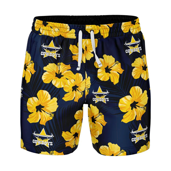 Join the party this summer! Our NRL Cowboys ‘Aloha’ Volley Swim Shorts are a Summer Party must! Subtle team branding, durable, flexible, & fashionably designed. Features include: