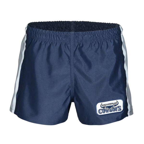 Immerse yourself in the rich history of the North Queensland Cowboys with these NRL retro supporter shorts. Inspired by the golden years of the club, these shorts exude vintage charm with their classic design, team colors, and authentic logos. Crafted for both comfort and style, they are perfect for showcasing your loyalty to the Cowboys on game days or casual outings. Grab your pair today!
