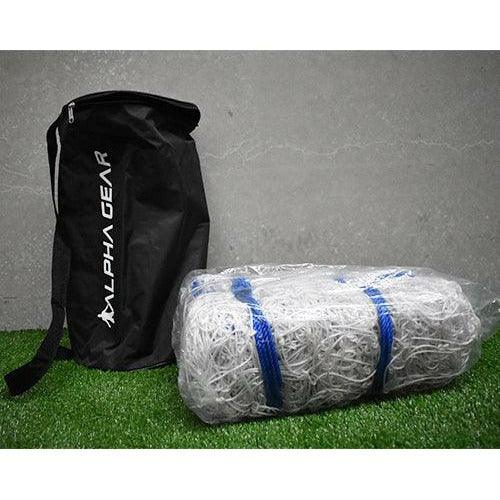 7.3m x 2.4m nets in a heavy duty carry bag. Will fit any standard in ground goals or "P" Shaped Goals