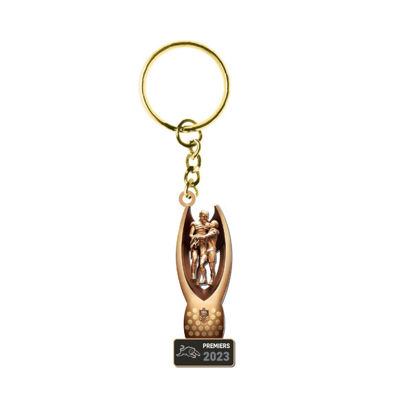 Celebrate the Penrith Panthers' remarkable 2023 NRL Grand Final victory with this officially licensed 3D trophy keyring. A compact and stylish keepsake, it's perfect for fans wanting to carry a piece of premiership history.