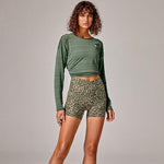 Feel like a godess in the uber-flattering crossover waist Muse Ab-Tastic bike tight. Constructed from our buttery soft Supplex Luxe fabric with four way stretch for comfort and all-day wear and features the purrrfect animal print. Designed for the studio and yoga workouts but will out perform in any impact workouts.
