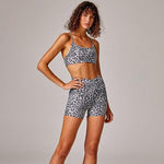 Feel like a godess in the uber-flattering crossover waist Muse Ab-Tastic bike tight. Constructed from our buttery soft Supplex Luxe fabric with four way stretch for comfort and all-day wear and features the purrrfect animal print. Designed for the studio and yoga workouts but will out perform in any impact workouts.