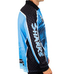 Official NRL Fishing Shirts in a jersey-based design, with strong fishing elements. A menacing looking Barracuda is featured prominently across the front, providing high visual impact and “hang appeal”. A perfect gift for everyone who loves their “Footy & Fishing”